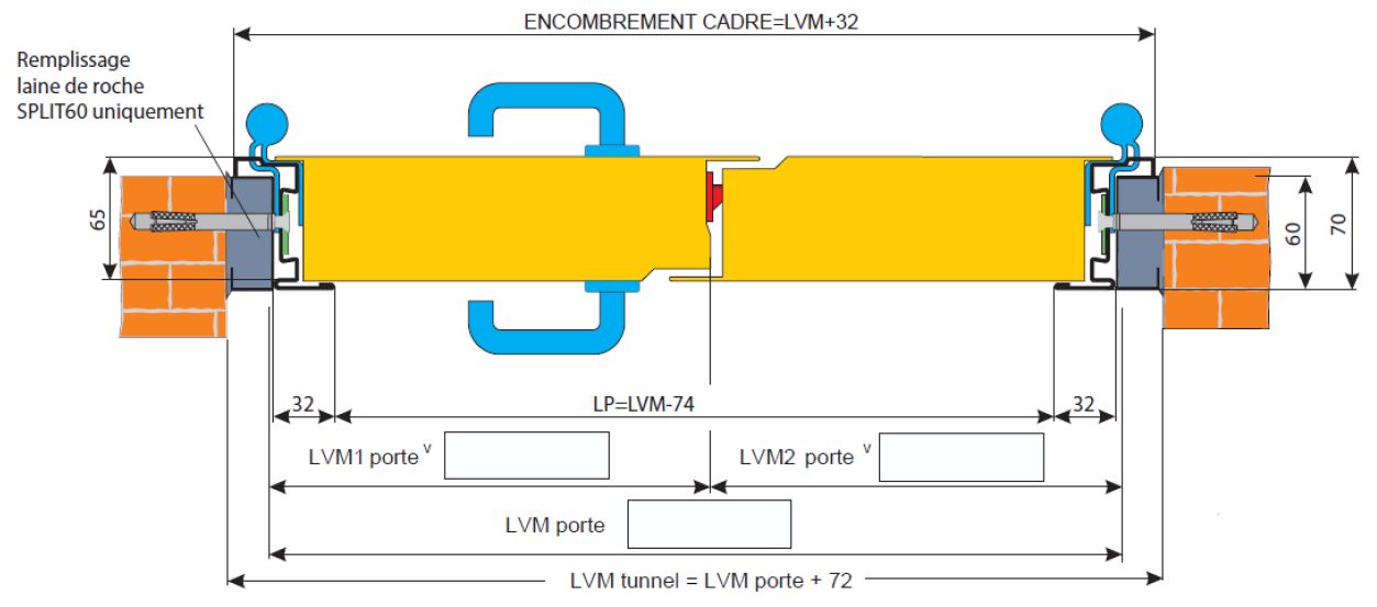 LVM Tunnel = LVM porte + 72mm HVM Tunnel = HVM porte + 36mm